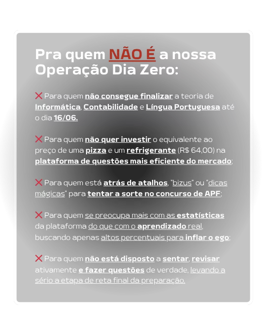 Experimente, explore, e se não for o que esperava, você não perde nada. Assim que cair pra dentro você estará em um ambiente que te coloca muito mais próximo da sua aprovação no próximo concurso. Clique no botão abaixo e faça parte do Aprendizado Extremo.