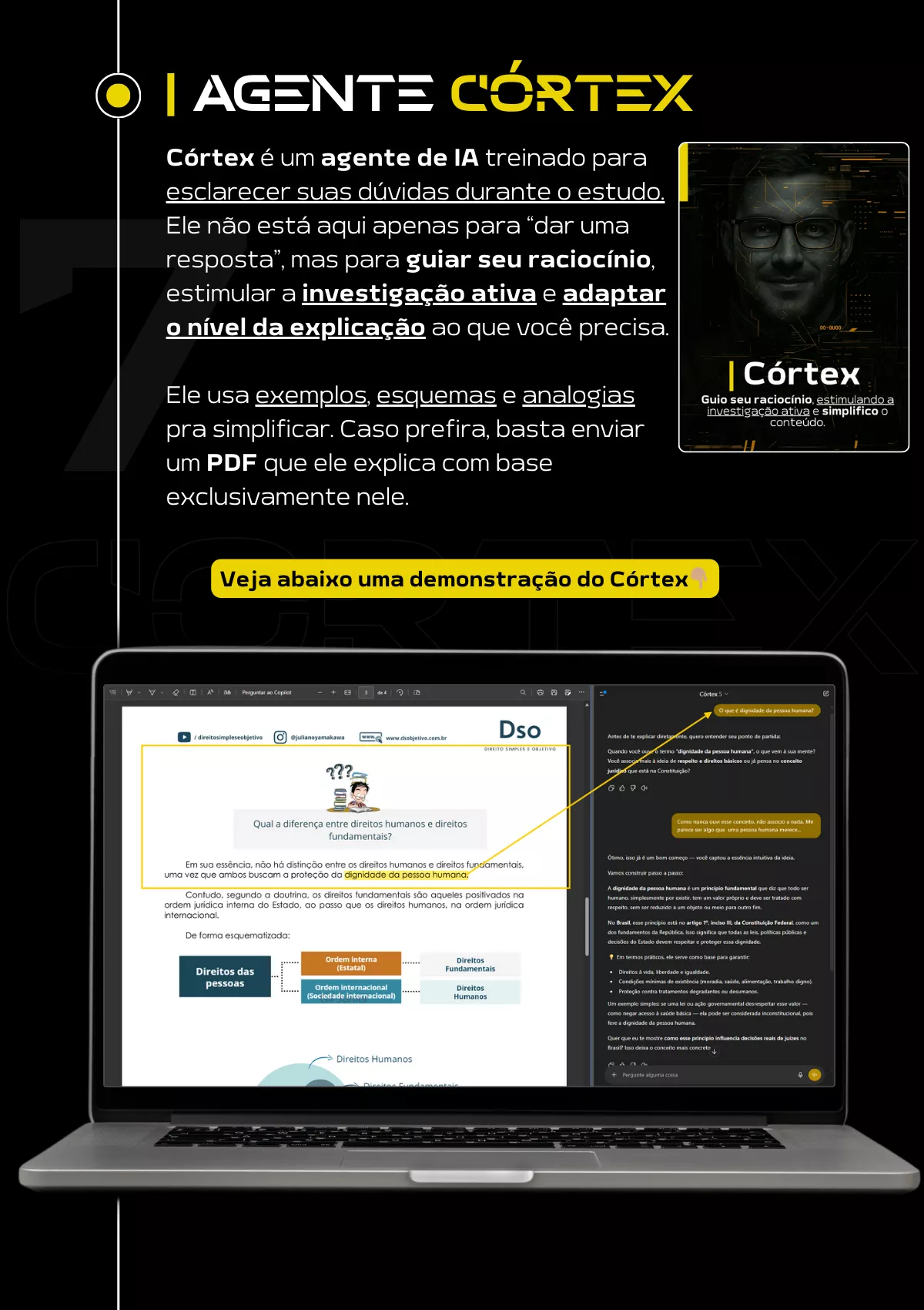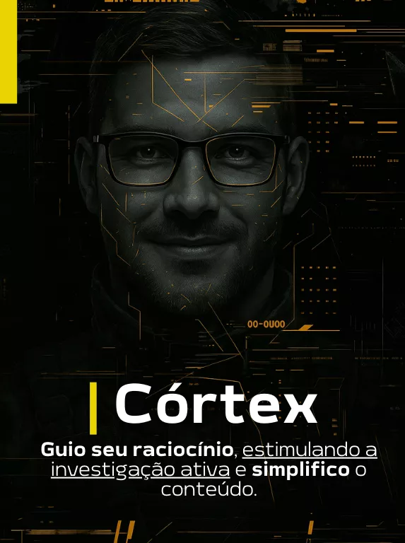 ✓ Agente Córtex, treinado para guiar seu raciocínio, estimulando a investigação ativa.