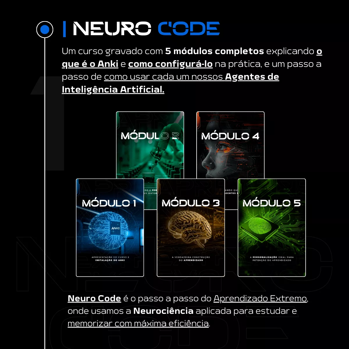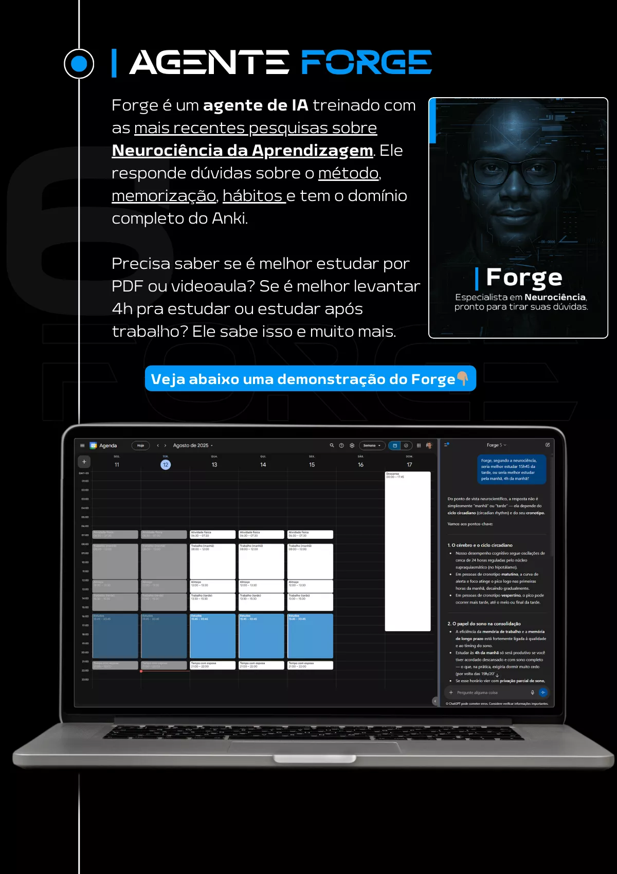 ✓ Layout de perguntas e respostas no Anki, já integrados como os nossos Agentes de Inteligência Artificial.
