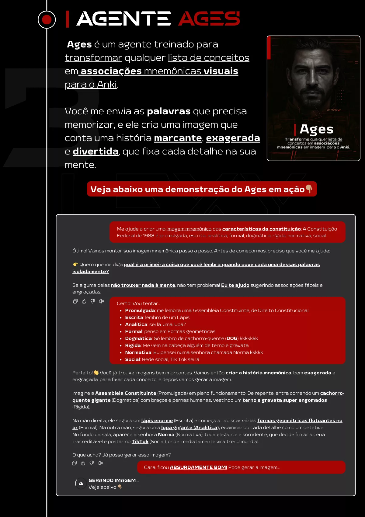 ✓ Agente Ages, treinado para criar mnemônicos visuais em imagem para flashcards do Anki.