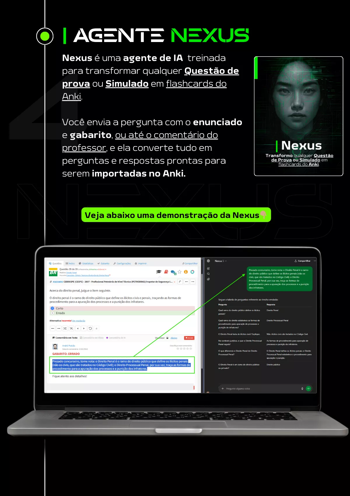✓ Agente Nexus, treinada para transformar qualquer Questão de Prova ou Simulado em flashcards do Anki.