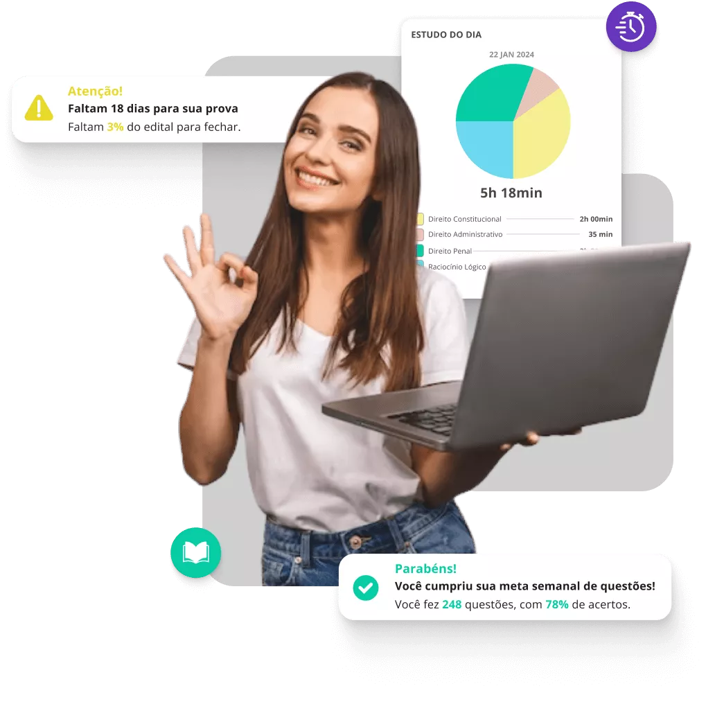 ✓ 1 ano de acesso ao aplicativo Estudei, para organizar seus estudos para concurso.